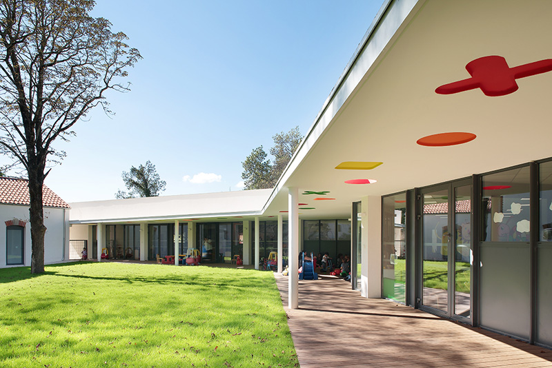 這個育兒中心是以之前的一個農業部門改建而來,位于兩條狹窄的街道的街角之處,值得一提的是育兒中心與l’E......