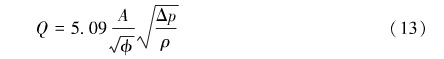 上式為調(diào)節(jié)閥的流量方程。計(jì)算過程中,d是孔徑,A是套筒全開時(shí)的流通而積,A。是過流而積,常以cm為單位,閥門前后的壓力差常以100 kP。為單位,流體密度以g/c時(shí)為單位,所以常用式(13)來代替