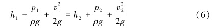 伯努利方程中理想流體(不存在摩擦阻力)的總能量不變,即位置壓頭、靜壓頭、速度壓頭的和總是一個(gè)固定值。用下標(biāo)1, 2分別表示兩處流體位置,P為流體的壓力,用式(6)表達(dá)