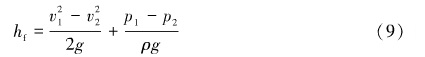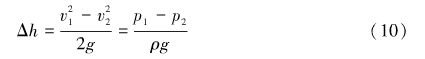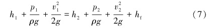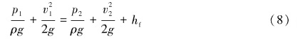 因?yàn)楣艿朗撬桨惭b的,因此位置壓頭都相等,即h1 =h2,將公式化簡(jiǎn)得式(8)