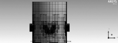 套筒中流體介質(zhì)的三維立體模型導(dǎo)入項(xiàng)目管理區(qū)Meshing,將物理模型設(shè)定為計(jì)算流體動(dòng)力學(xué)CFD模型,求解器為FLUENT,關(guān)聯(lián)度設(shè)置為100完全關(guān)聯(lián),關(guān)聯(lián)中心設(shè)置為Fine,網(wǎng)格劃分方法為Cutcell o圖6為劃分網(wǎng)格后的套筒。