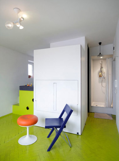 生活在一個窄小的空間里,要遠(yuǎn)離沮喪心情,最好的方式就是將它打點的精彩有趣。波蘭建筑師 Jakub Szczesny在設(shè)計一處位于波蘭城區(qū)的21.5平米空間時就做到了這一點。