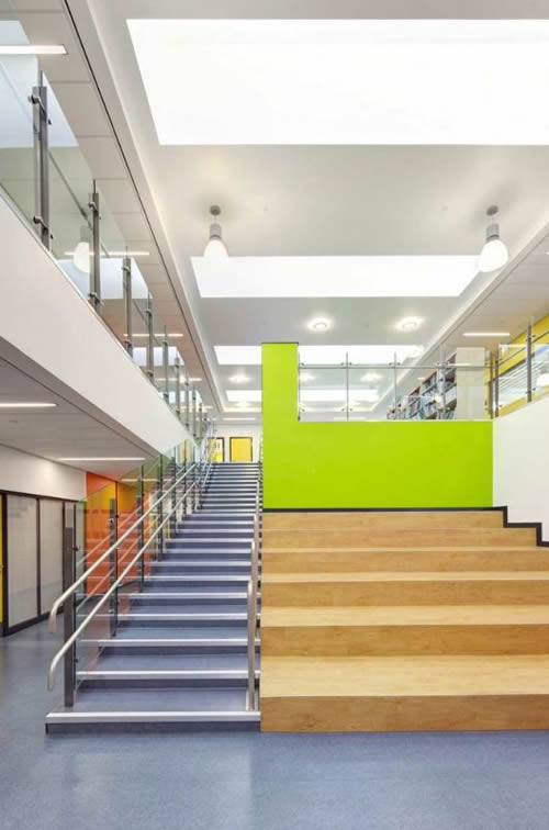 中央學習空間自然采光,通過一排排的北向窗戶進行通風,這些窗戶與建筑管理系統融為一體,以確保創造一個舒適的學習環境,同時減少生命周期成本。廣場為學生和來訪者提供了清晰、明確的方向導引,由于空間開放,布局暢通,因此有助于減少欺凌弱小的行為發生。