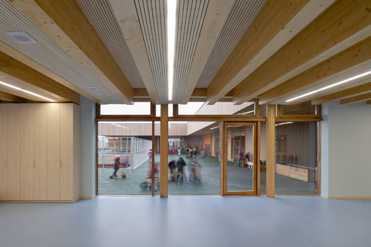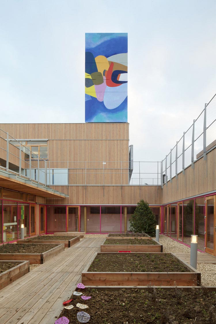 項目位于巴黎附近的Limeil-Brevannes,包括3個幼兒園、兩所小學和一座46套住房的公寓樓。這座規(guī)模較大的學校將傳統(tǒng)的教室結(jié)構(gòu)布局在中心庭院四周,共享餐廳和圖書館,但每座建筑都有自己的獨立空間。