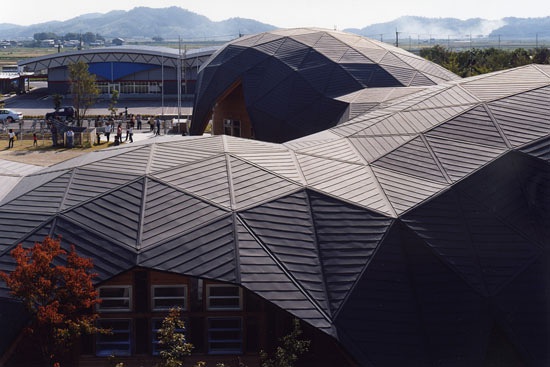 殼狀屋頂是由三角形的連續層面構成;它的結構強度和幾何造型給與空間設計很大自由度。