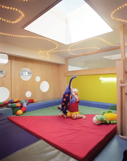 對(duì)于小朋友來(lái)說(shuō),幼兒園不僅是生活?yuàn)蕵?lè)的地方,也是學(xué)習(xí)和成長(zhǎng)的地方。因此多變的空間形體無(wú)不帶有一種親切、溫和的暗示。開(kāi)敞的墻壁和大面積的落地玻璃門(mén)窗,最大限度地保證著視線的自由和連續(xù),即便是在室內(nèi),也能夠看到外面的天空和綠意盎然的自然環(huán)境。