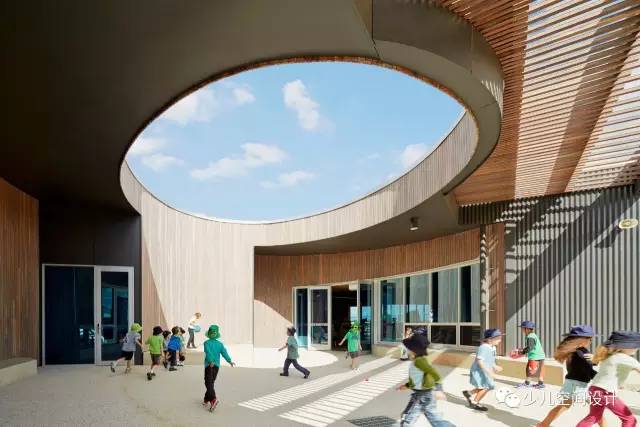 由于材質(zhì)面板呼應(yīng)色彩鮮亮的學(xué)生作品和家具,學(xué)校顯得熱情好客和溫暖;深色調(diào)與寬闊的玻璃相結(jié)合,增強(qiáng)了設(shè)施的透明度。大量插件板用于墻壁、地板和天花板,在廣泛的聲學(xué)處理中發(fā)揮關(guān)鍵作用,這是混合學(xué)習(xí)空間里必不可少的。(幼兒園設(shè)計(jì))