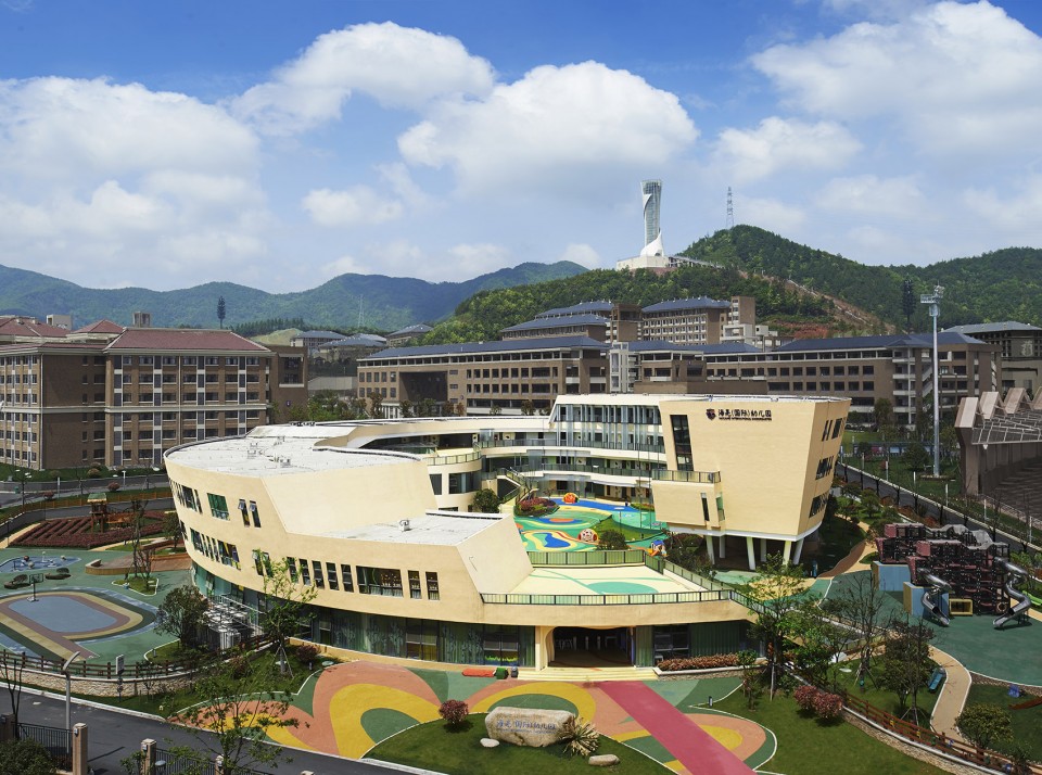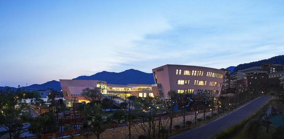 在浙江一所名為海亮國際的幼兒園是一座大型的寄宿制度的幼兒園,其中面積達到10000平方米,園內(nèi)共分為25個班,能容納五百多名兒童,對孩子們活動安全方面考慮,幼兒園在園內(nèi)選擇了一個先對平緩的一塊平地,周邊則是分別為初中、小學、體育場館、接待中心等,較為復雜和擁擠。在一個這樣復雜的環(huán)境下如何去給孩子們?nèi)?chuàng)造一個具有安全感,符合孩子們心理的歡樂場所,這成為了設(shè)計師的主要挑戰(zhàn)。