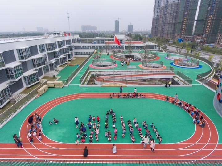 龍山縣的中心幼兒園設計師是要建筑一個可以讓孩子們瘋跑瘋玩的橢圓形的活動場地,把屋頂變成了歡快的游樂場,有趣的是它還是傾斜的,而這更能提高孩子們的興趣,那么在屋頂建筑這樣的一個活動場地會不會有什么安全隱患呢?