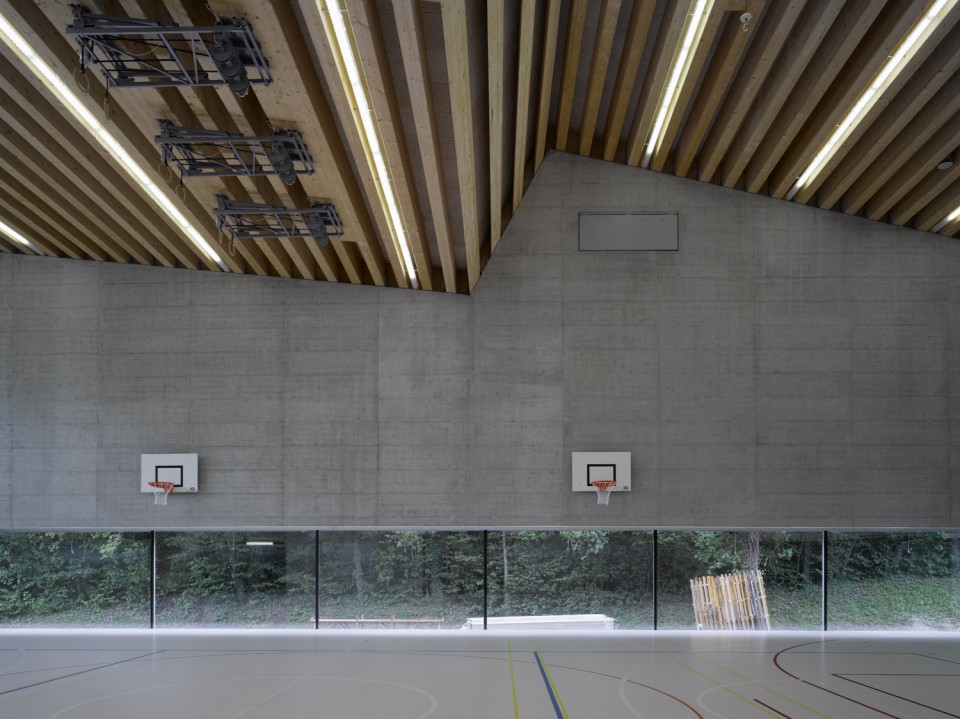 位于瑞士西南部瓦萊州首府Sion附近群山環(huán)抱的小村落Savièse之內(nèi),與群山遙相呼應(yīng)坐落著教育設(shè)施,整座學(xué)校是由兩個(gè)巨大的體量組成,分為小學(xué)和幼兒園,另一個(gè)則是體育館。相互垂直的建筑形成了一個(gè) L型,在契合現(xiàn)有室外活動(dòng)場地的同時(shí)也圍合出一個(gè)可以眺望山谷與葡萄田地的小院落。極富趣味性的屋頂覆蓋了兩個(gè)空間,學(xué)校部分的屋頂更為傳統(tǒng)而體育館的屋頂則更隨意靈動(dòng)。(幼兒園設(shè)計(jì)