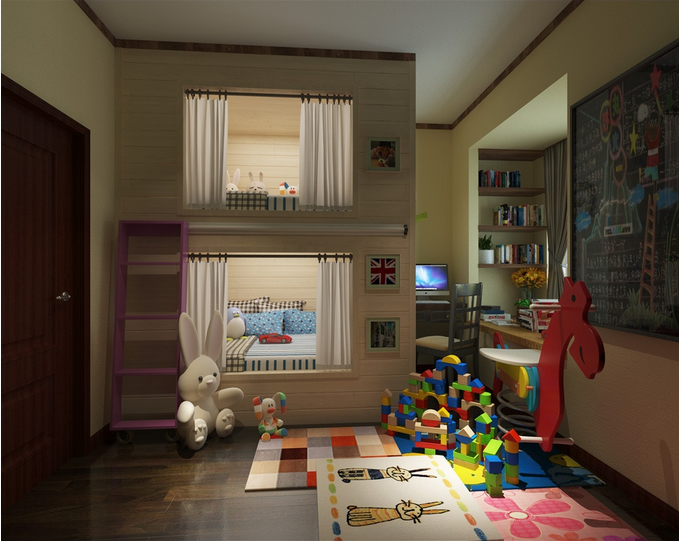 四歲以上的孩子就應該進行性別的區分,4-7歲的孩子是孩子最好動的一個時期,也是開始上幼兒園初步接受教育的一個時期,這個時期的孩子會懂得區分性別,在進行兒童房設計的時候就應當充分的考慮到他們這個心理,一般來說男孩子會比較喜好藍色綠色淡黃色等。