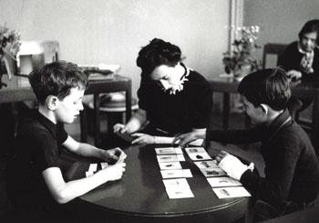 蒙特梭利和孩子在一起