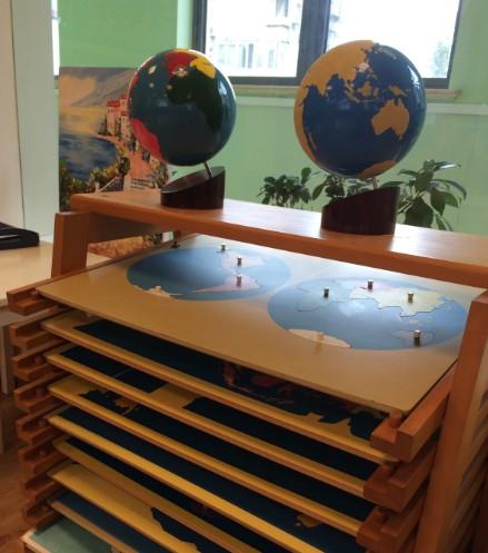 文化區(qū)則會(huì)有一些文化類的教具,比如世界地圖拼圖,孩子可以通過自己獨(dú)特的方式將世界地圖拼起來,在這個(gè)過程中了解一些基本知識(shí)。