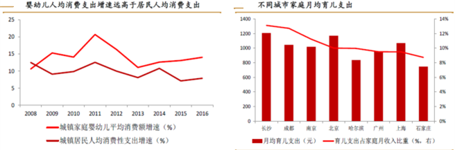 從產業(yè)生命周期角度看,兒童產業(yè)更傾向于常青產業(yè),相當于其他產業(yè)(成長期-成熟期-衰退期)生命周期而言,常青產業(yè)的產業(yè)生命周期波動較小,支撐其長期處于成長與成熟期的是家庭收入增加后,引致型消費更愿意投在子女養(yǎng)育消費上,兒童在服裝、食品、藥品、保健品等方面的消費屬于剛性需求,為市場提供了持久動力。這一特征決定了兒童產業(yè)不是速生速滅的“快閃”產業(yè),而是持續(xù)投資、長期回報的產業(yè)。