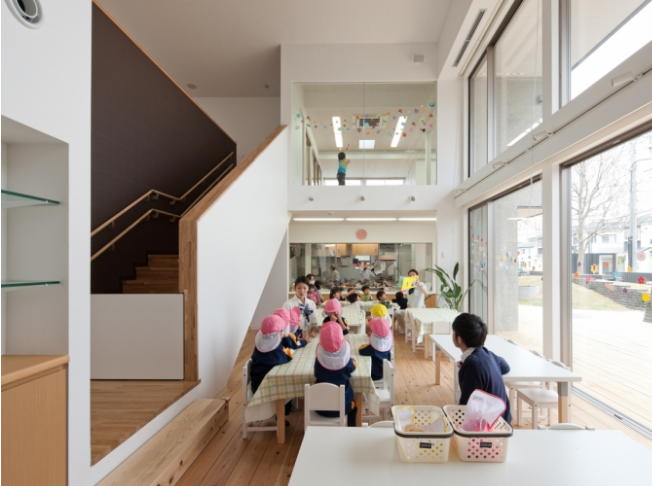 近幾年來,在幼兒園裝修設計上越來越多的客戶對于顏色鮮艷的設計作品出現反感,審美趨向于簡潔、簡單,某一天我和集合團隊設計師聊起了他的設計理念,提起此事,他給我看了一些日本幼兒園的案例,問我什么感覺和區別,我第一感覺有一種家的溫馨,他說這個日式極簡的風格主打就是以人為本。