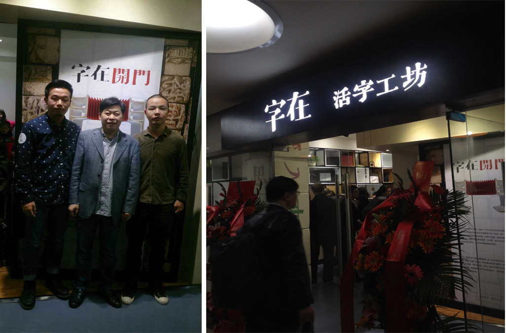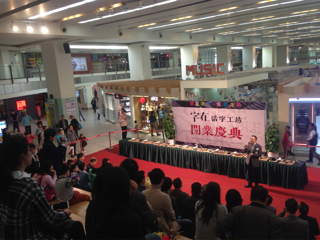 2015年1月25日,全新漢字體驗?zāi)J降摹缸衷凇够钭止し辉谏钲谥行臅锹≈亻_業(yè)啦!公司設(shè)計總監(jiān)賀維先生、創(chuàng)意總監(jiān)朱行奇先生受邀參加了開業(yè)儀式。「字在」創(chuàng)始人劉美松先生在開業(yè)儀式上強調(diào):“活字有種集聚了五千年文明的力量,可惜現(xiàn)在我們對文字的感知只能停留在指尖輕輕劃落的那一瞬間,而活字工坊的存在可以讓這種觸摸變得樸實而有力量。”「字在」正著力打造一個集知識性、互動性、創(chuàng)新性的漢字“校外課堂”。