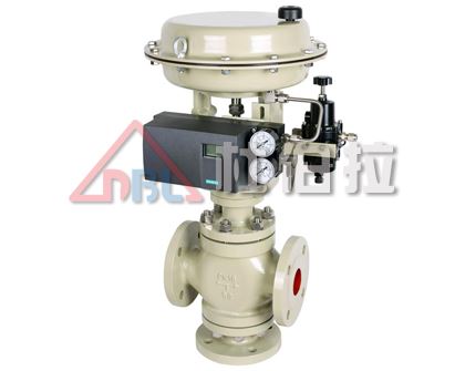 氣動薄膜三通調節閥/電子式電動三通調節閥,由三通閥體與氣動、電子式或電動執行機構組成。