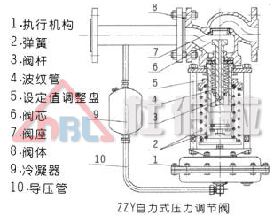 ZZY型自力式蒸汽壓力調節閥(冷凝器)無需外加能源,利用被調介質自身能量為動力源,引入執行機構控制閥芯位置,改變兩端的壓差和流量,使閥前(或閥后)壓力 穩定。具有動作靈敏,密封性好,壓力設定點波動小等優點,廣泛應用于氣體、液體及蒸汽介質減壓穩壓或泄壓穩壓的自動控制。