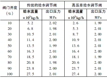 表1 高壓差單座密封給水調(diào)節(jié)閥與傳統(tǒng)的給水調(diào)節(jié)閥性能比較