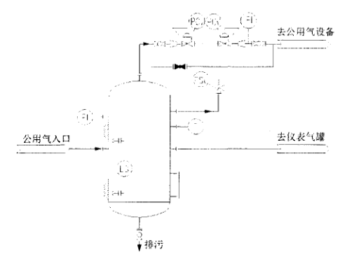 自力式調(diào)節(jié)閥在公用氣系統(tǒng)中的應(yīng)用如圖2所示 ,為一個背壓閥和減壓閥的組合 ,其功能是將公用氣罐出來的公用氣穩(wěn)定在一個范圍內(nèi),海上平臺常取500~800 kPaG 。